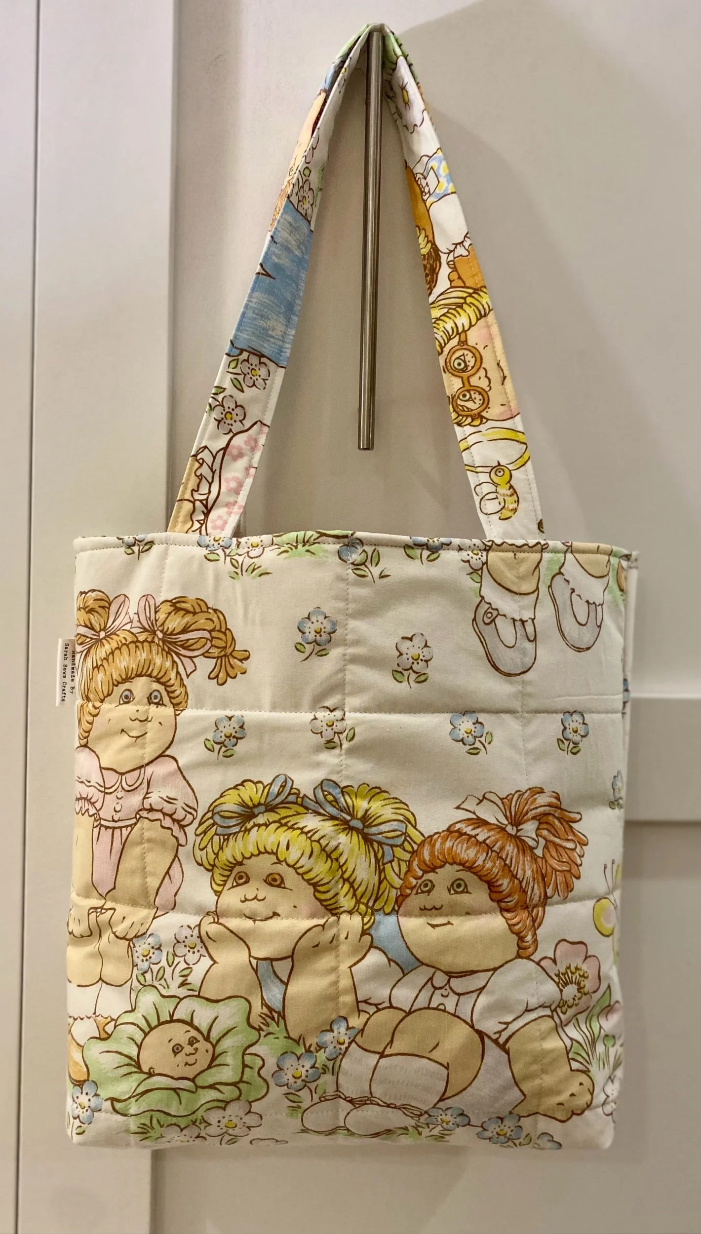 Handmade label added to side of bag