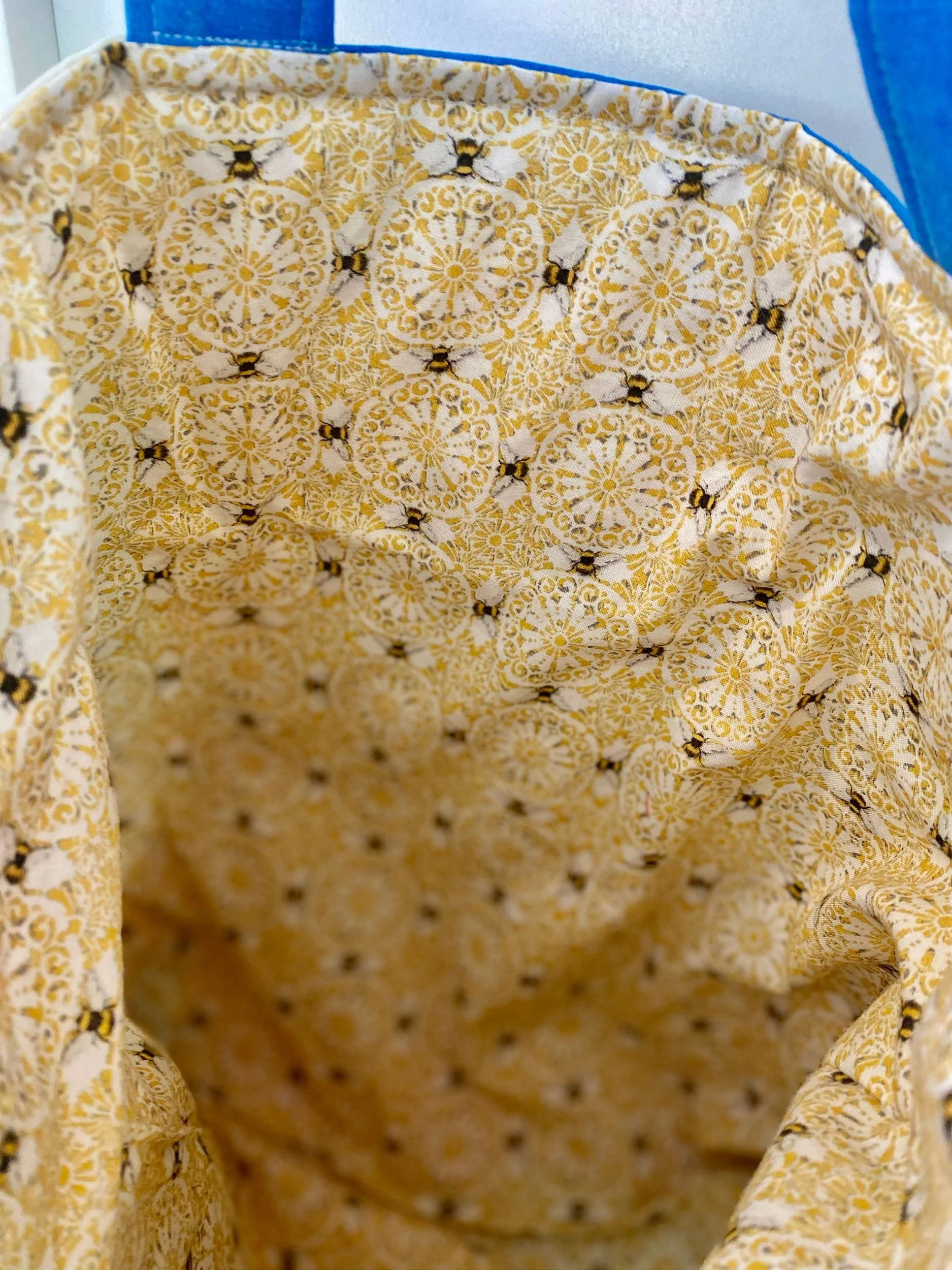 Interfacing to give it structure to bag and straps. Also cotton batting added that I quilted