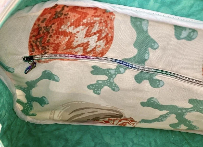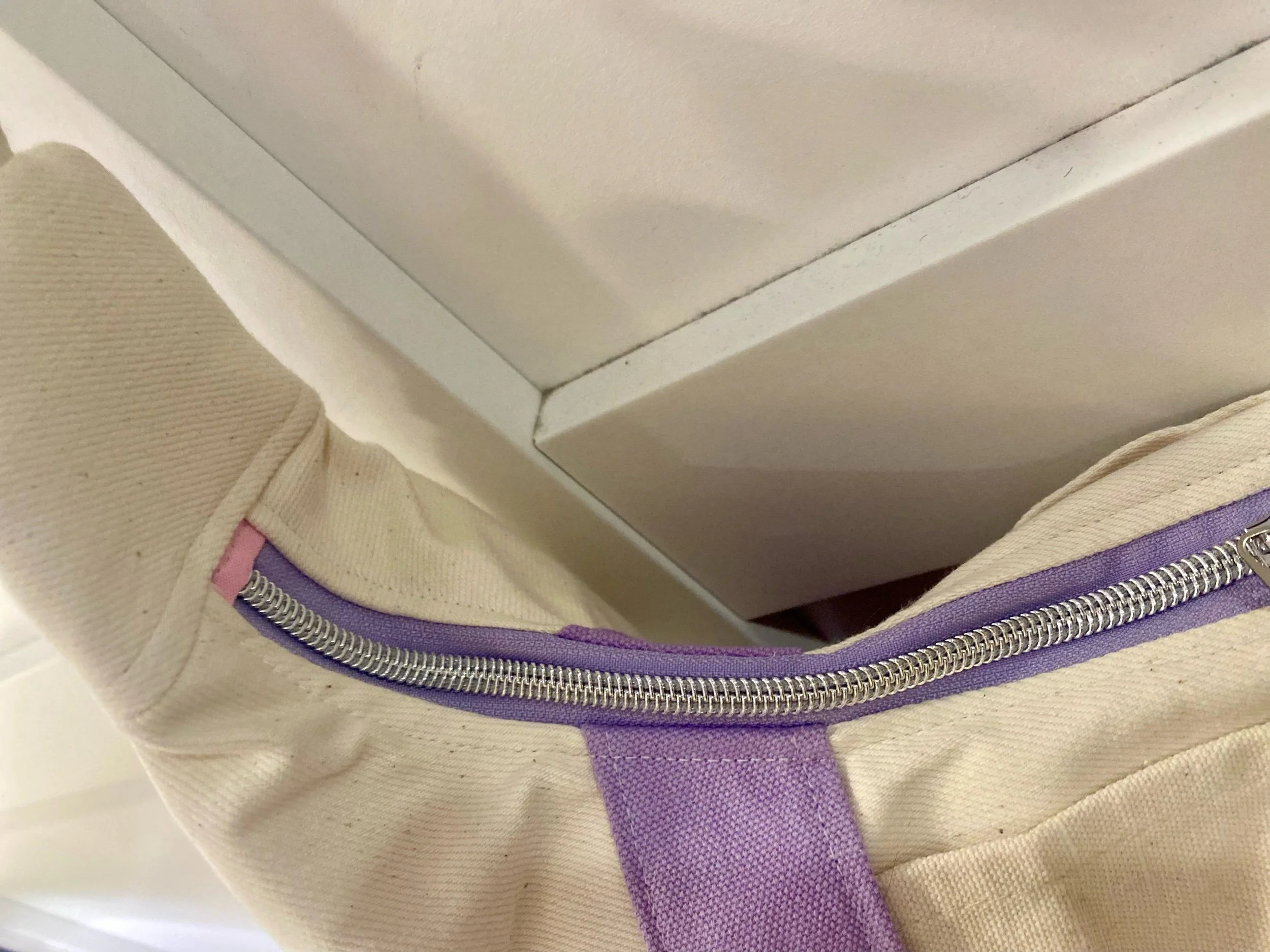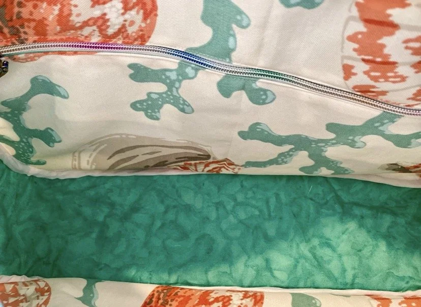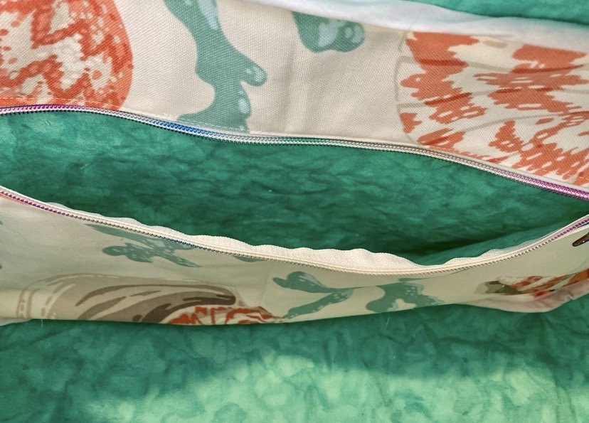 Outer fabric is made from a Large Trader Joe’s Tote Bag (canvas)