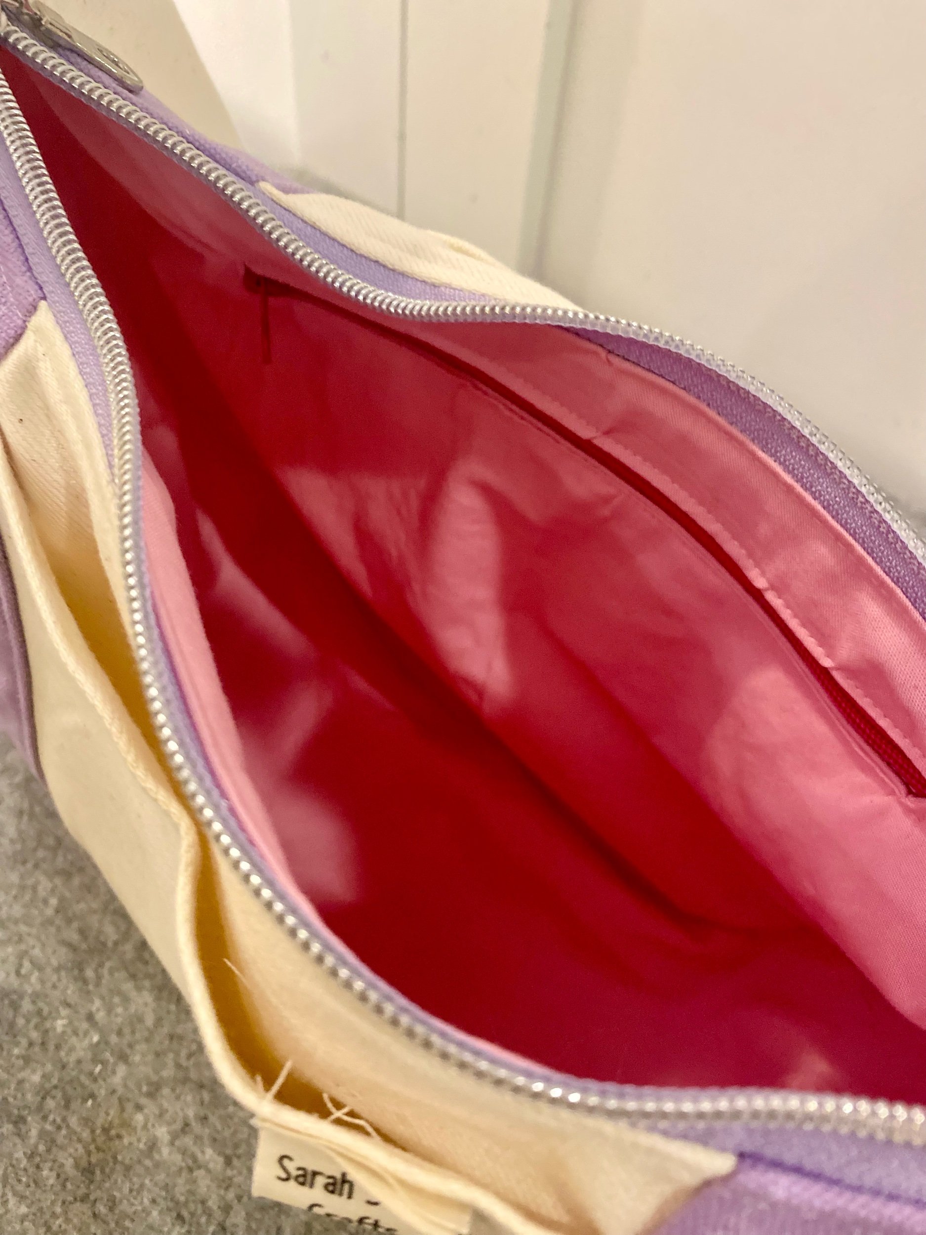 Fully lined interior. Fabric is pink to match the logo