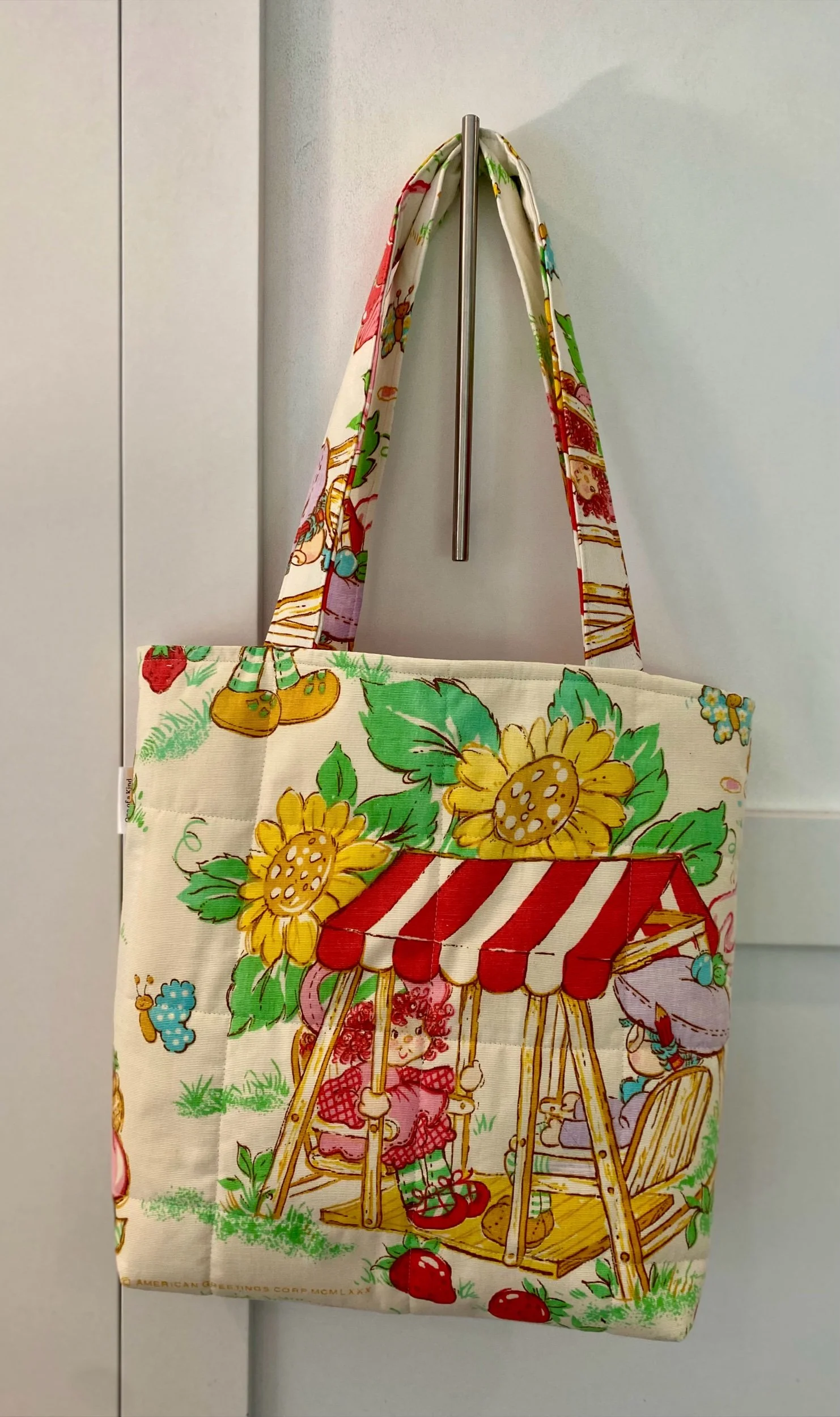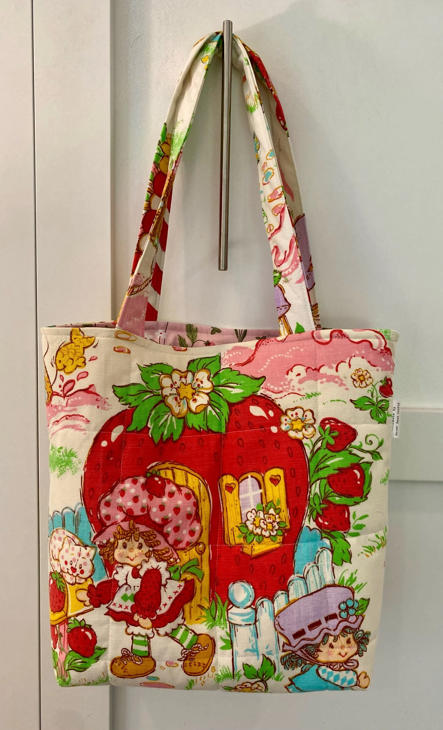 Outside fabric is from a Vintage Strawberry Shortcake Curtin
