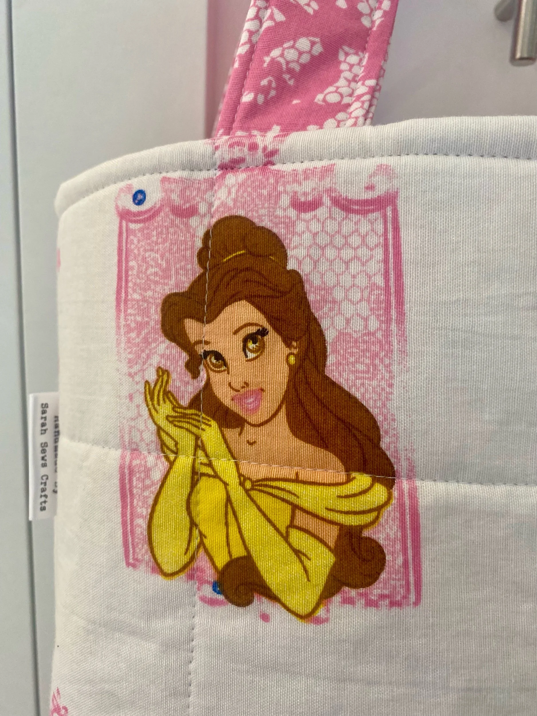Handmade label added to side of bag