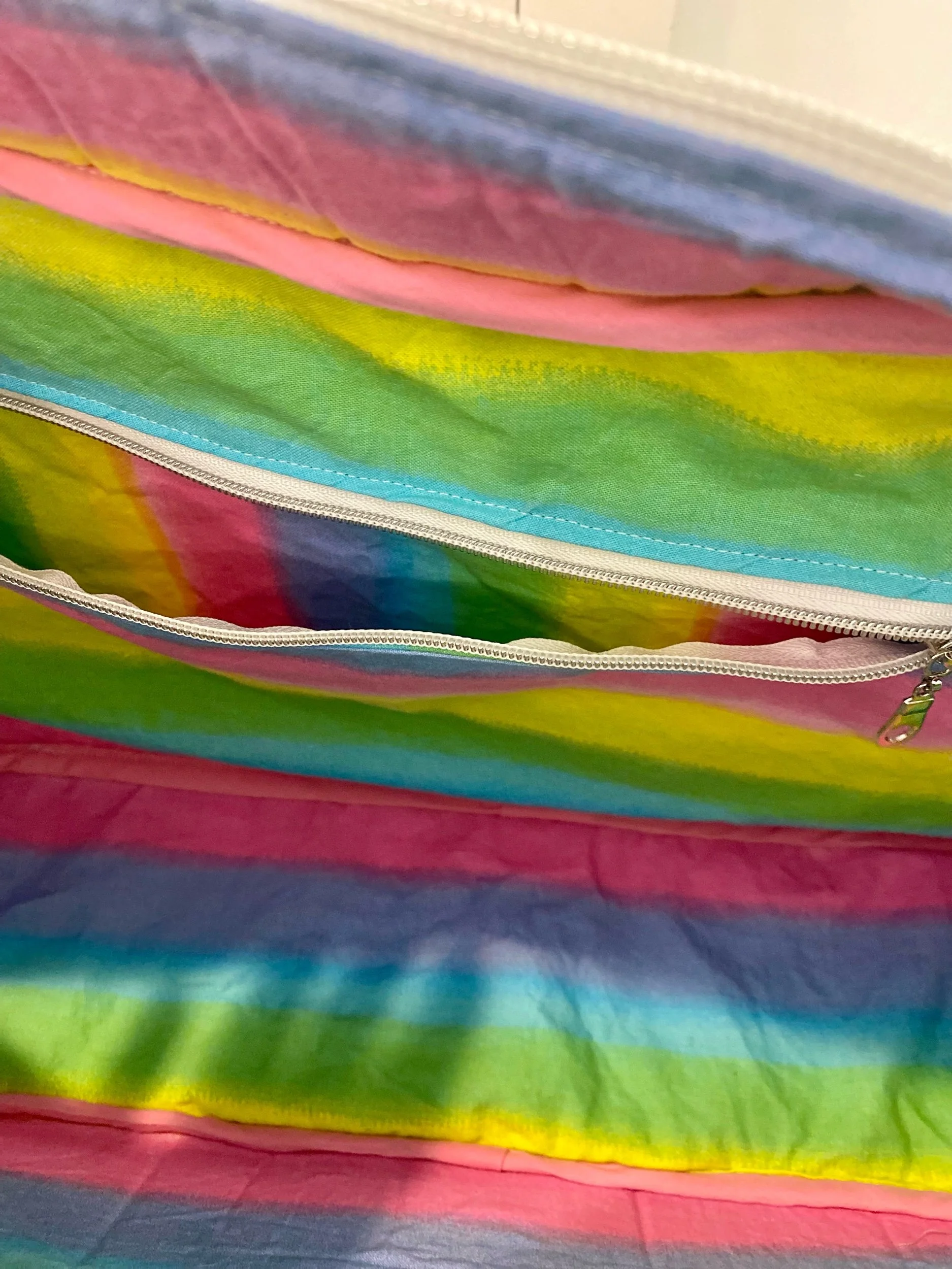 This all-purpose upcycled travel bag. It's the perfect size for the beach, boat, carry-on, overnight, or weekend escape. Durable, lightweight, and made from recycled materials, it’s designed to handle your adventures. Toss in your gear, zip it up, and go!