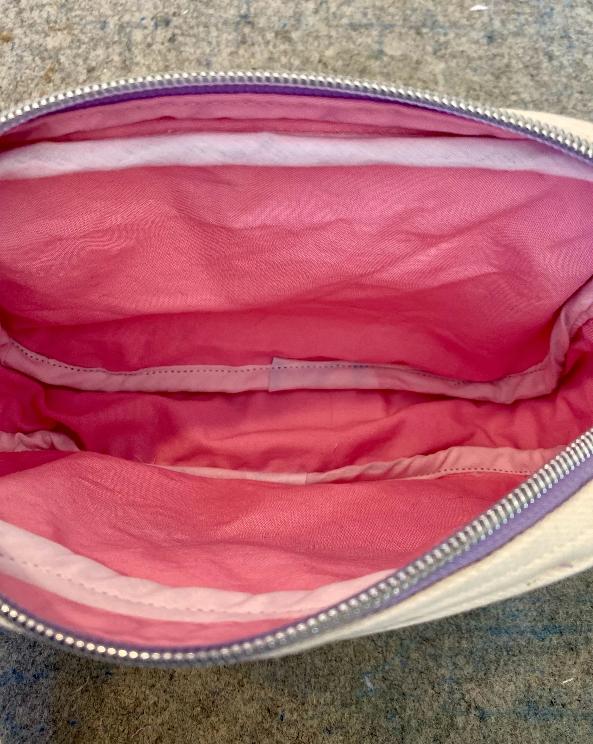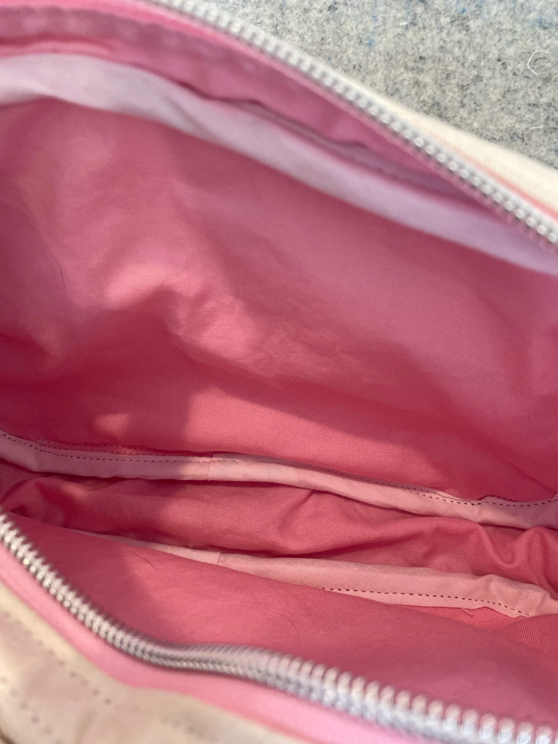 Inside liner fabric is pink to match the logo.