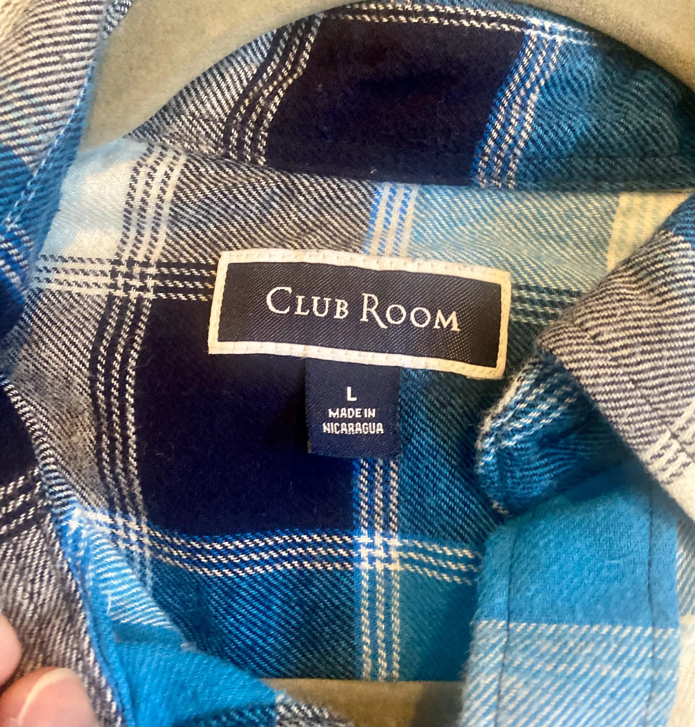I only use shirts and flannels that are thrifted. Shirt is ironed to flannel then sewn in place. Washed before sold. All items are One Of A Kind. Let me know if you are looking for a different size or color, I might have more shirts available to make you one similar.