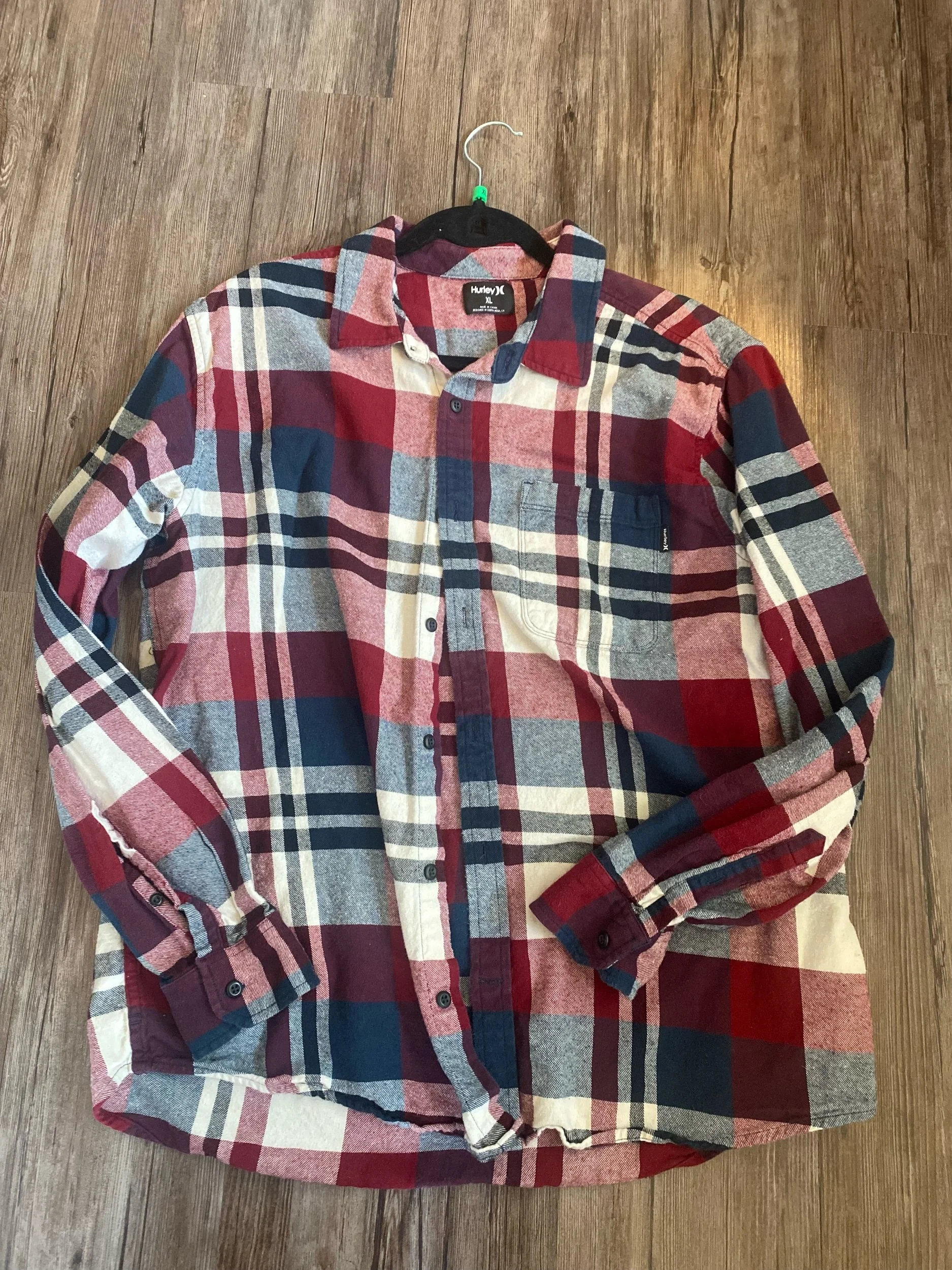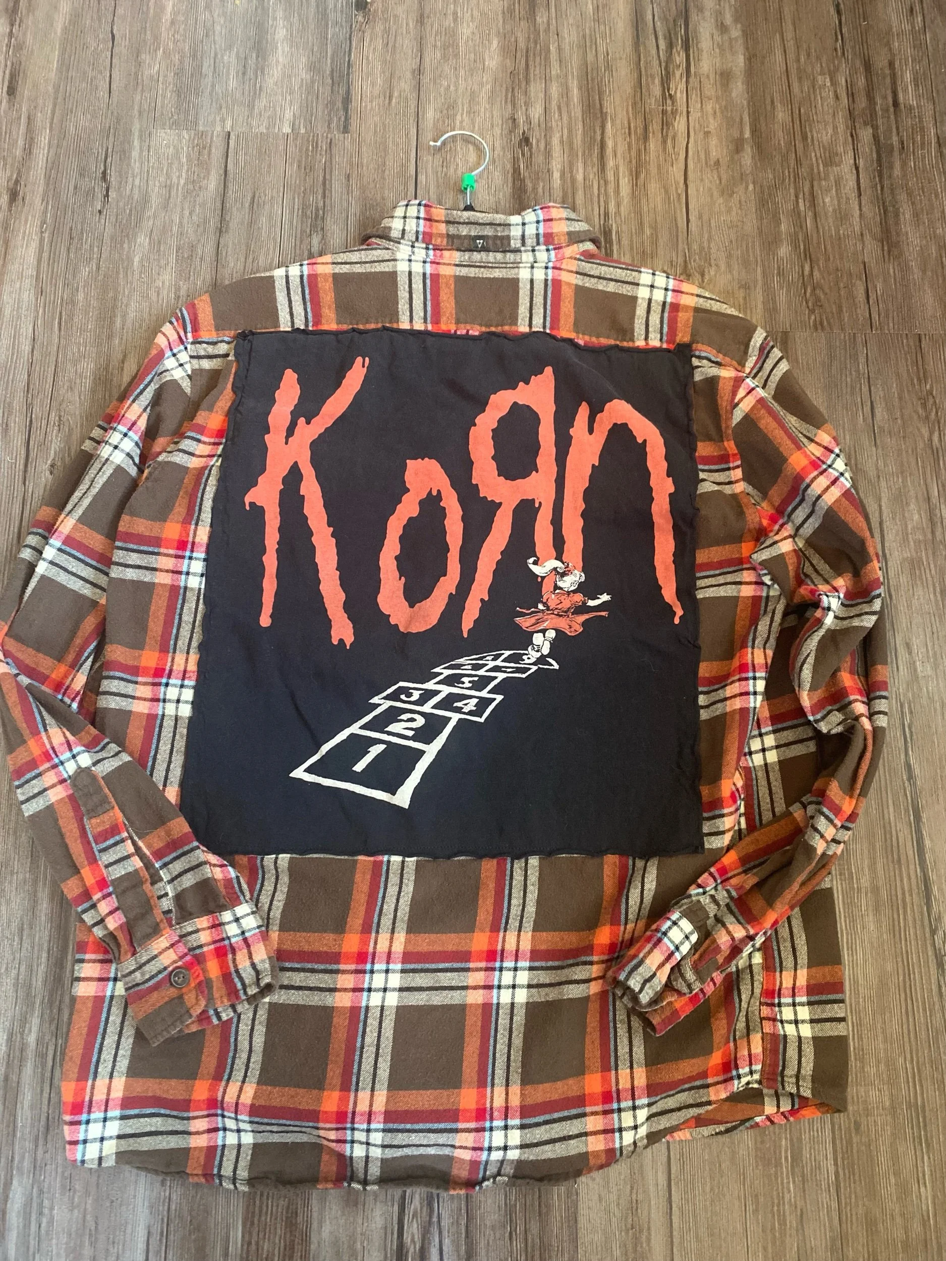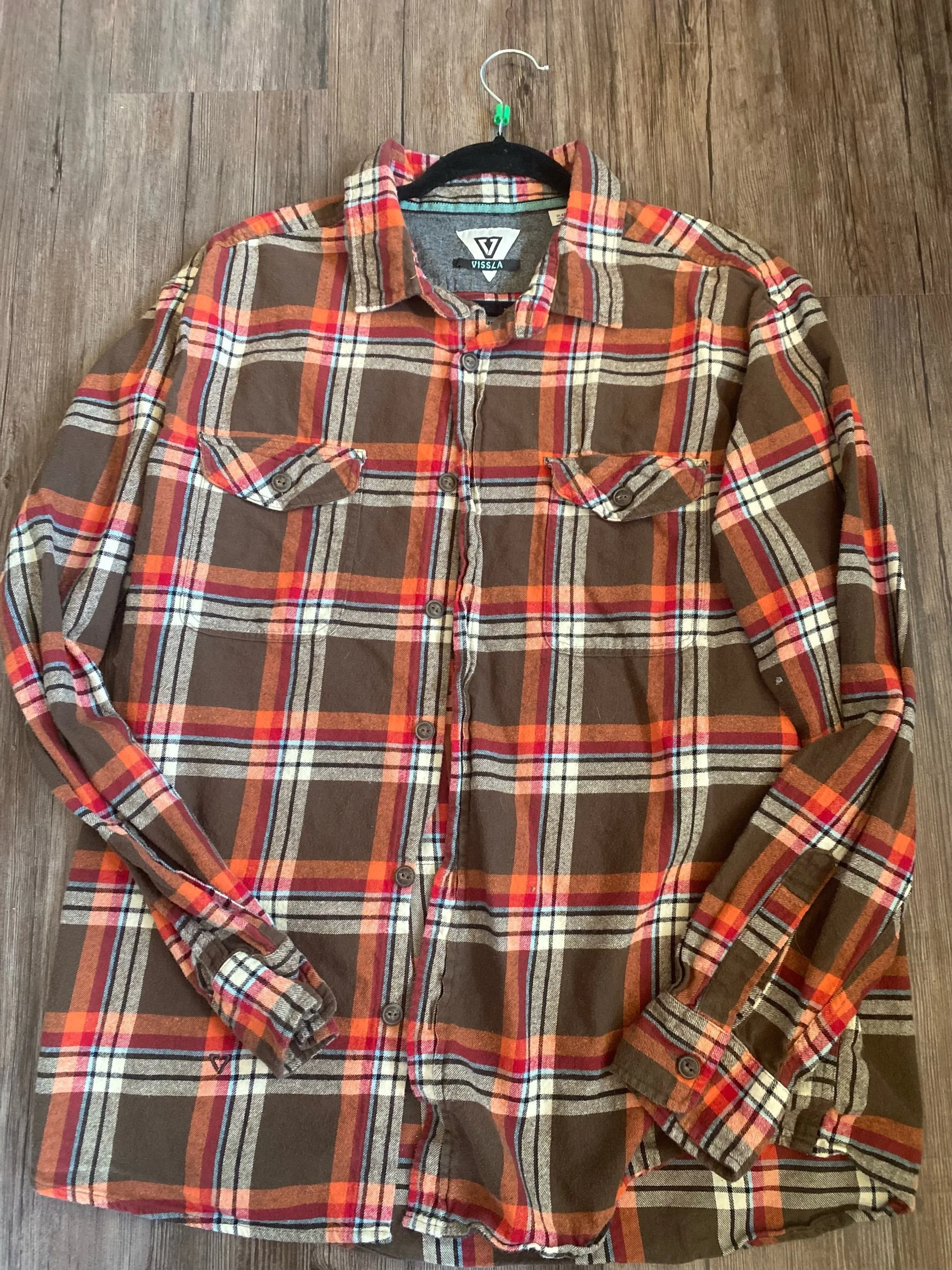 I only use shirts and flannels that are thrifted. Shirt is ironed to flannel then sewn in place. Washed before sold. All items are One Of A Kind. Let me know if you are looking for a different size or color, I might have more shirts available to make you one similar.