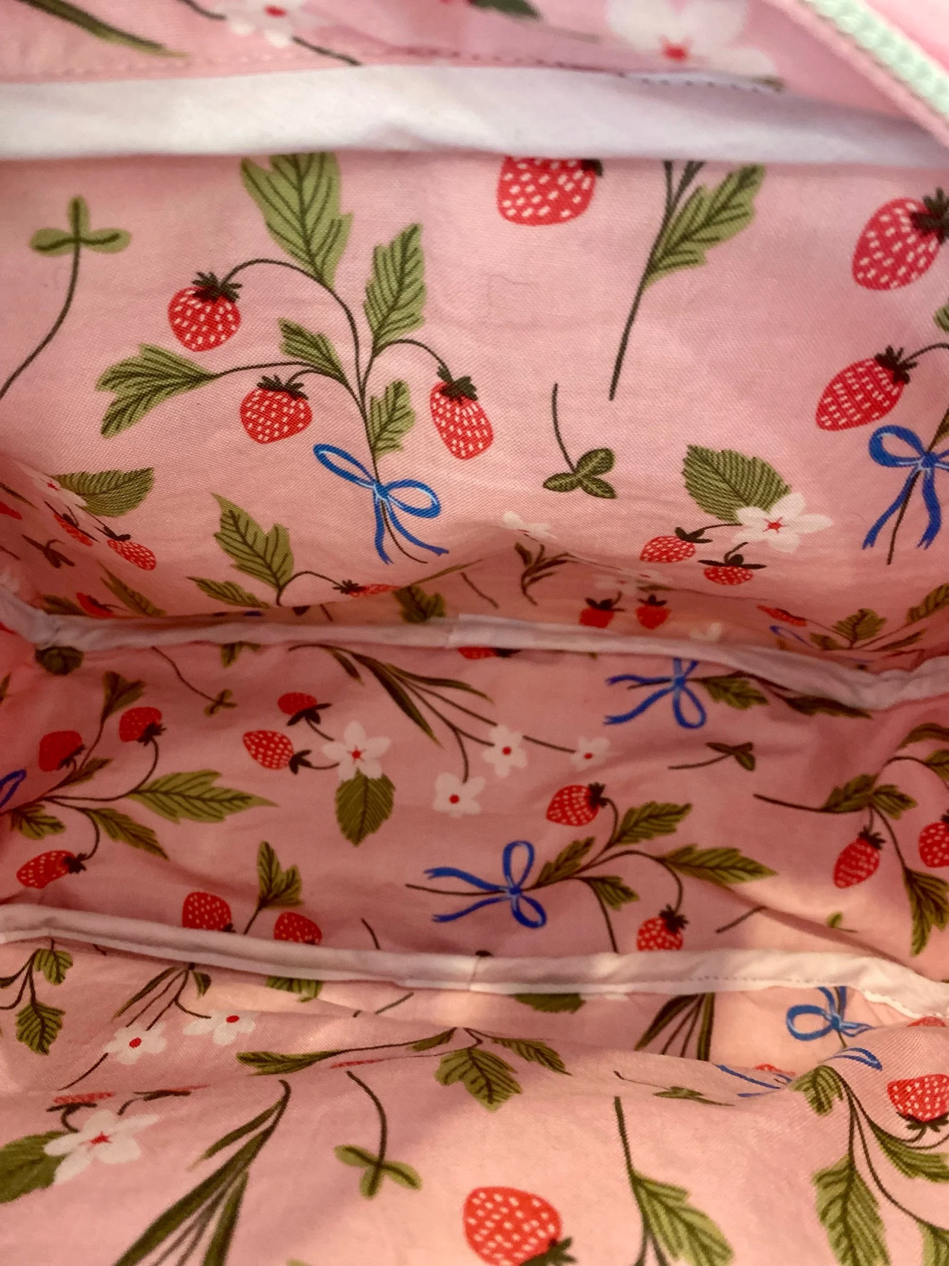 100% Cotton Fabric Fully Lined. Strawberries