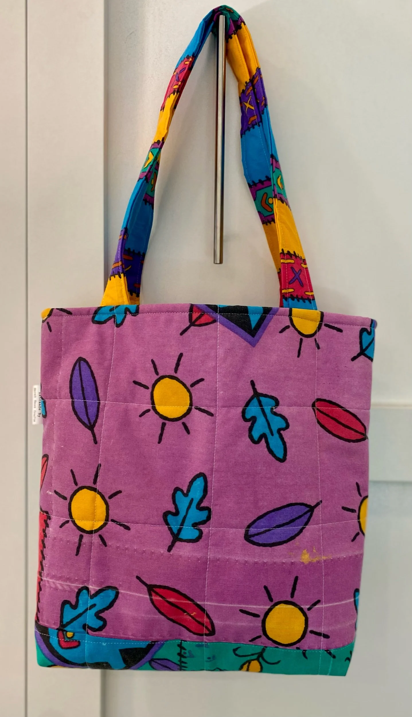 Interfacing to give it structure to bag and straps. Also cotton batting added that I quilted