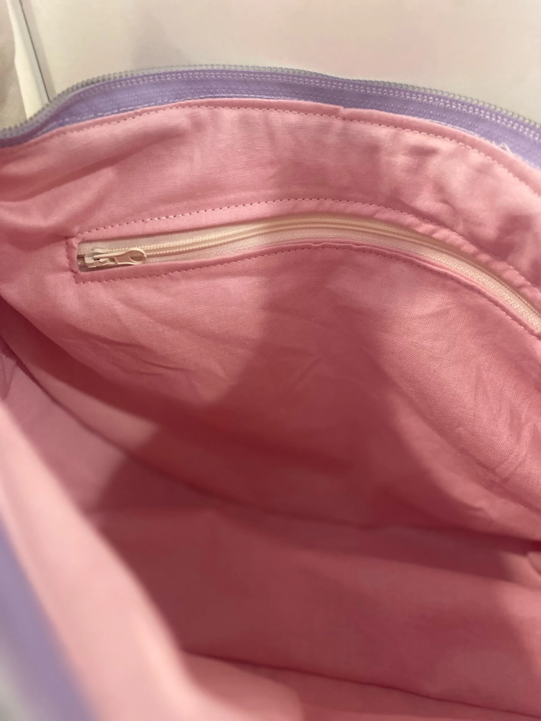 Fully lined interior. Fabric is pink