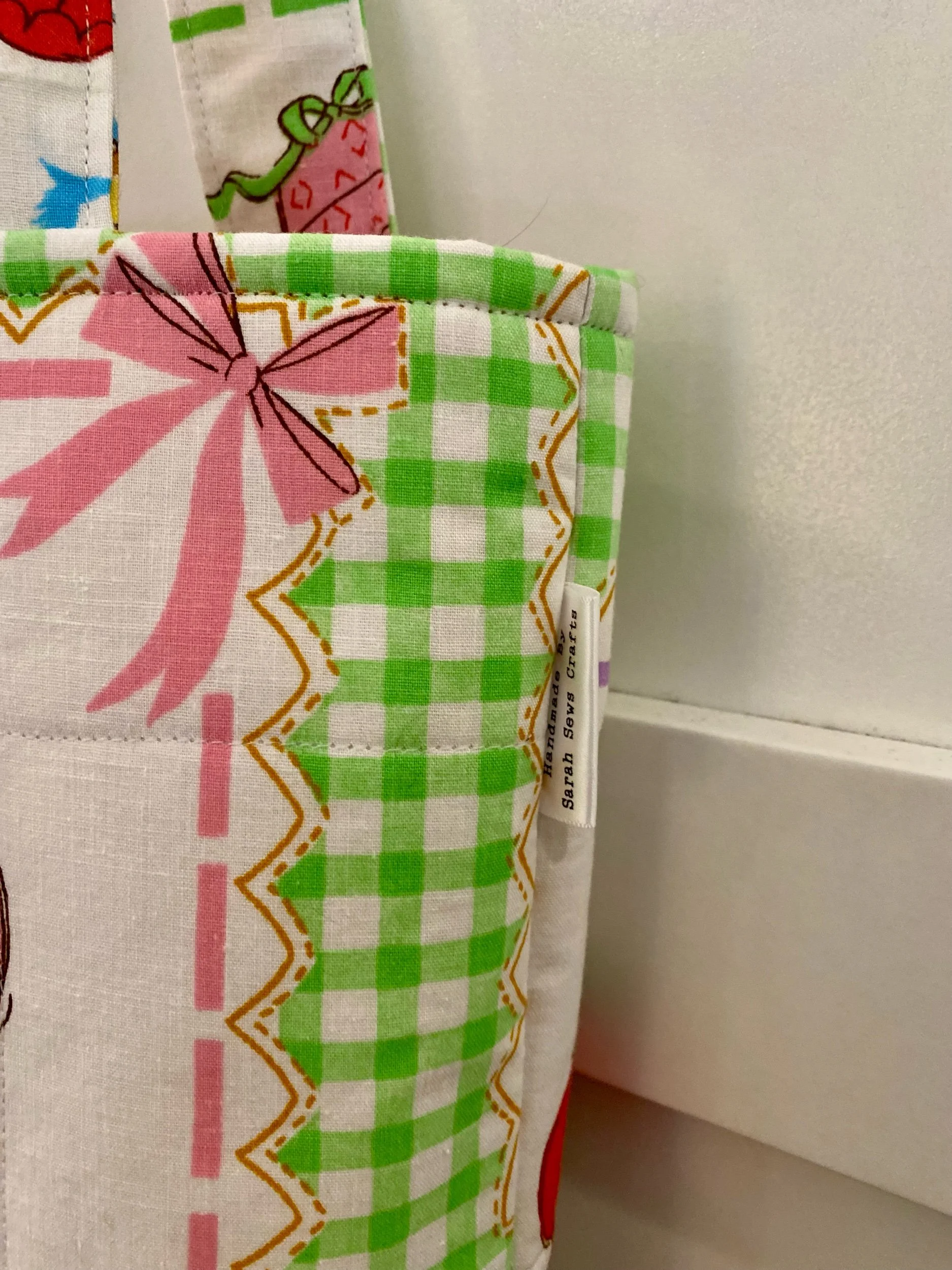 Handmade label added to side of bag