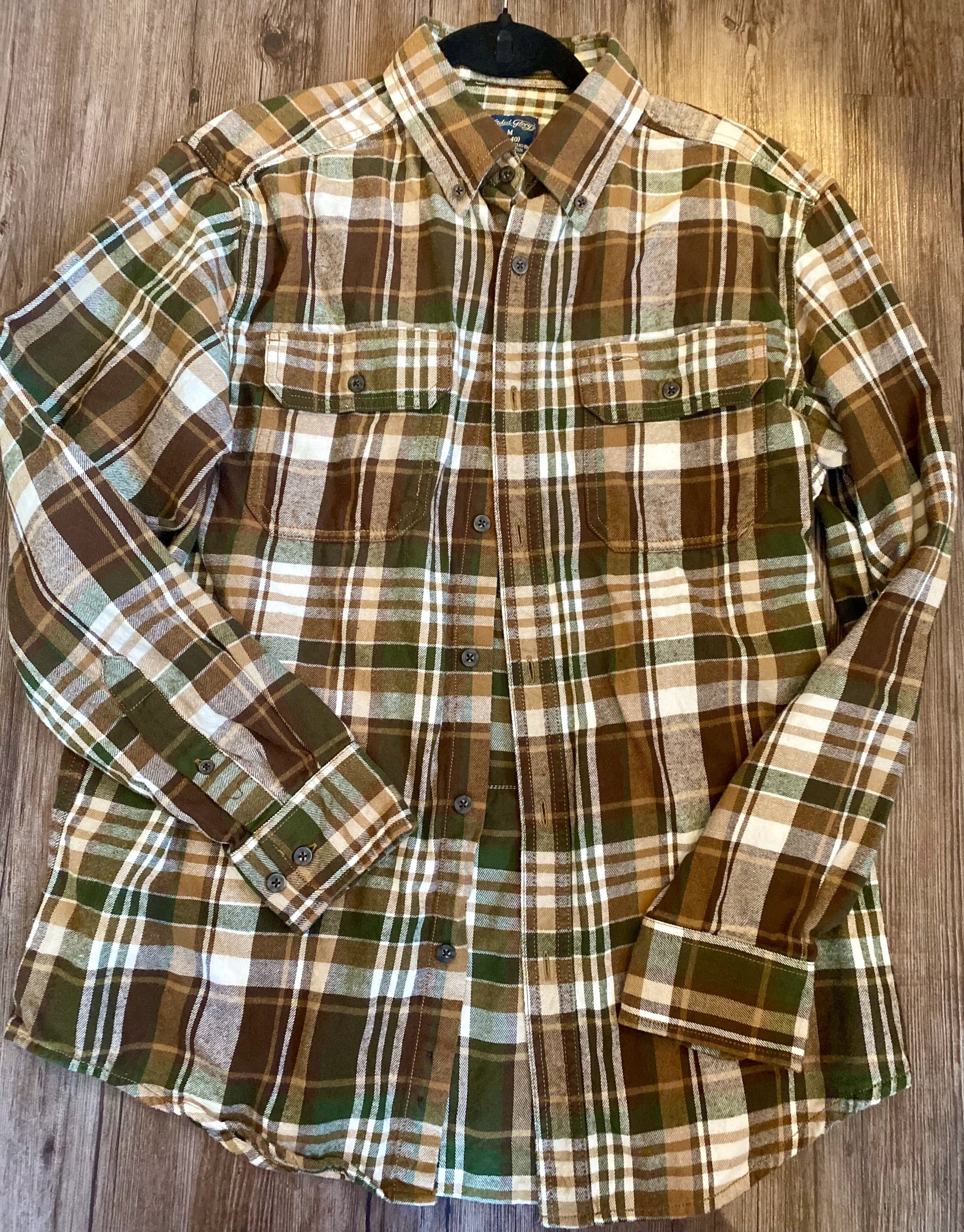 I only use shirts and flannels that are thrifted. Shirt is ironed to flannel then sewn in place. Washed before sold. All items are One Of A Kind. Let me know if you are looking for a different size or color, I might have more shirts available to make you one similar.